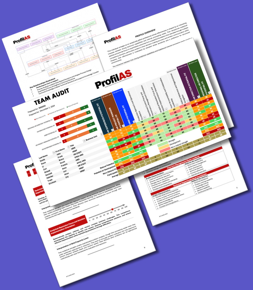We combine advanced competency assessment with personality profiling to reveal what makes individuals and teams truly excel. By combining critical competencies and key personality dimensions, we provide insights that matter – not just data points.